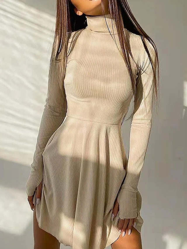 – Neckline: The dress is adorned with a trendy turtleneck neckline, adding a touch of elegance to your look.